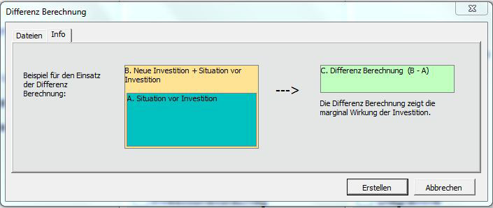 Die Vorgehensweise ist dadurch charakterisiert, dass insgesamt drei Investitionsmodelle erstellt werden: eines beschreibt den Status quo, ein zweites die Situation neu nach Investition in eine neue Anlage, das dritte Modell ergibt sich als Ergebnis aus der Differenz der beiden zuvor beschriebenen.